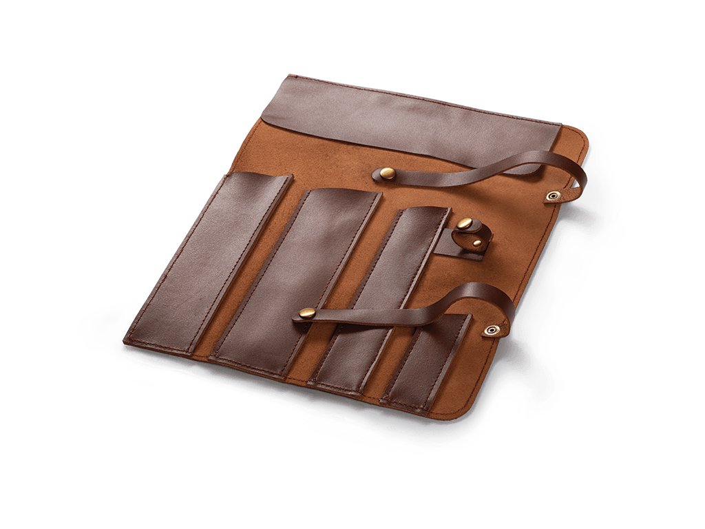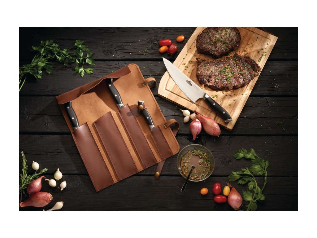 Aby nože vydržali dlho ostré a v skvelej kondícii, neskladujte ich nikdy pohromade v zásuvke. Ich bezpečnú ochranu zabezpečí kožené púzdro, do ktorého sa zmestí celá sada nožov Napoleon.