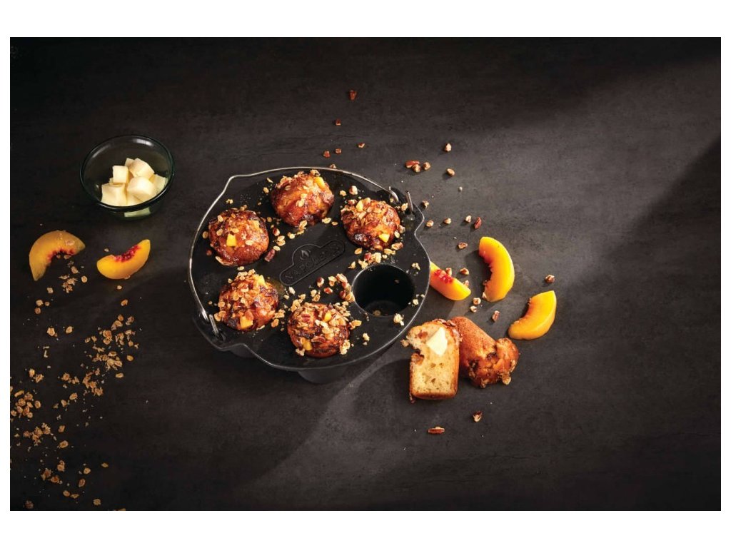 Liatinový pekáč na muffiny Napoleon je tak, aby sa zmestil do liatinového hrnca s objemom 6 l.