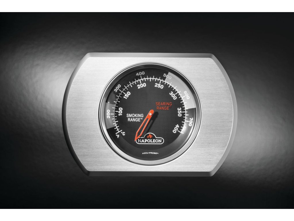 Vo veku grilu je zabudovaný teplomer, pomocou ktorého ľahko ustrážite ideálnu teplotu toho, čo práve grilujete.