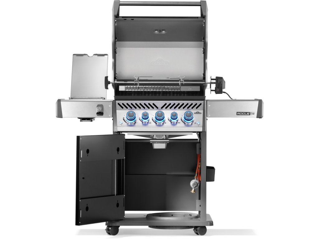 Plynový gril ROUGUE PRO-S 425 je ukážkovým členom modelového radu ROUGE PRO-S. Môže sa pýšiť grilovacou plochou 60 cm x 45 cm, tromi klasickými horákmi z nerez ocele, zadným horákom pre otočný ražeň (rotisériu - súčasťou balenia) a bočným infračerveným horákom SizzleZone s nerezovým roštom v ľavej polici, ktorý je našou špecialitou - dokáže vyvinúť 800 stupňov Celzia. Samotný rošt grilu je z masívnej liatiny pokrytej porcelánovým povlakom, aby nedochádzalo ku korózii. Navyše má špecifický tvar vlniek, vďaka čomu dochádza k efektívnej akumulácii tepla a zároveň minimalizuje možnosť prepadnutia drobnejších kúskov jedla. Keď to všetko doplníme ešte o priestor vo vnútri grilu, do ktorého môžete schovať PB fľašu, dva veľkorysé odkladacie priestory, vstavaný teplomer a množstvo ďalších užitočných vychytávok, ako integrovaný otvárač na fľaše, vysoké veko alebo podsvietené ergonomické gombíky s bezpečnostnou funkciou SAFETY GLOW dostanete gril, ktorý je z hľadiska pomeru cena x výkon jedným z najlepších na trhu. Skúste grilovať úplne inak, než ste boli doteraz zvyknutí. Buďte ROGUE.