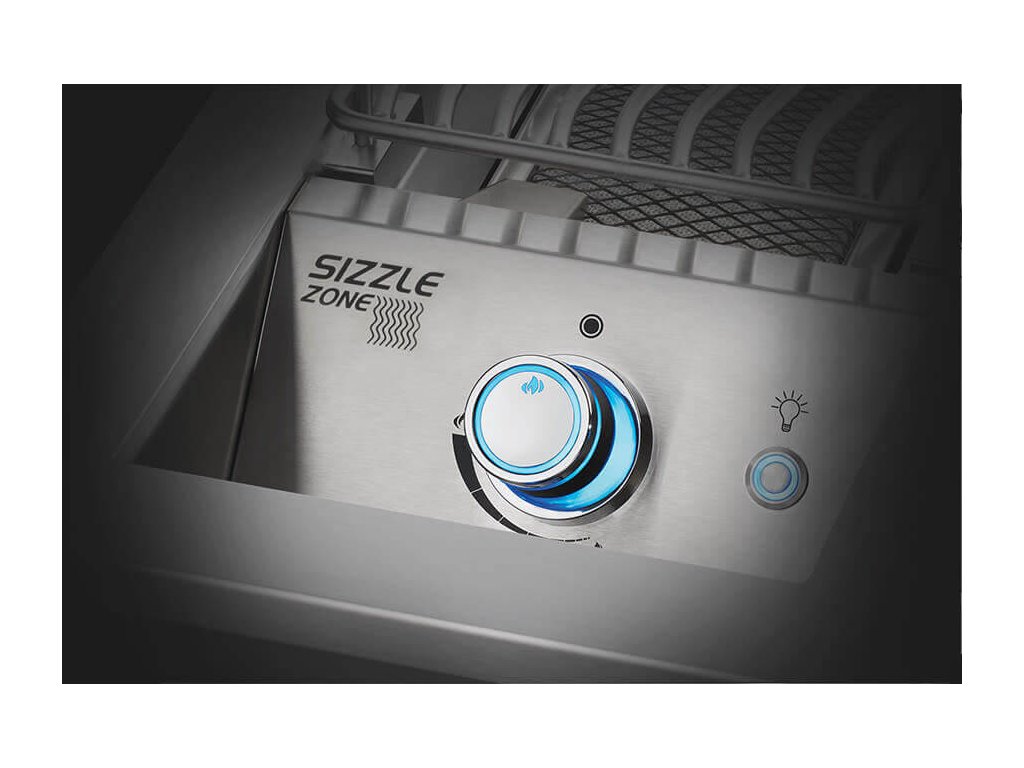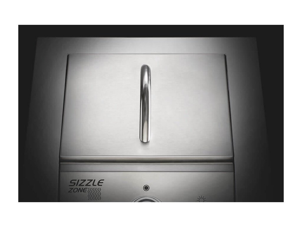 Bočný horák SIZZLE ZONE vyrobený z rovnakého materiálu ako vstavané grily rady 700 vyladia vašu vonkajšiu kuchyňu k dokonalosti. Praktický bez údržbový rošt infračerveného horáka. Horák zapálite jednou rukou pomocou systému okamžitého zapaľovania JETFIRE a ergonomicky ovládané gombíky NIGHTLIGHT sa v prípade zapnutého horáka zafarbí do červena. SIZZLE ZONE je možné pripojiť na propán-butánovú fľašu alebo na prívod zemného plynu.