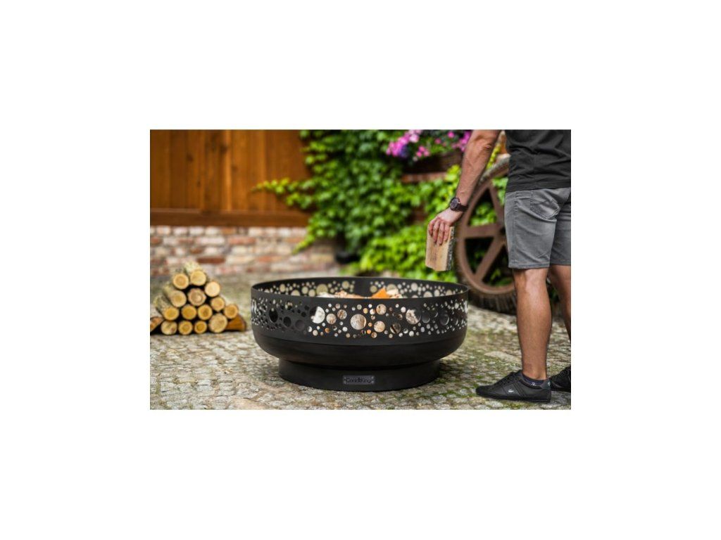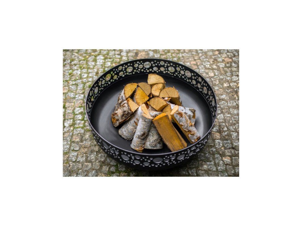 Praktický, konkávny tvar misy zabraňuje rozfúkaniu dreva spáleného v nej, a to aj v prípade silného vetra.